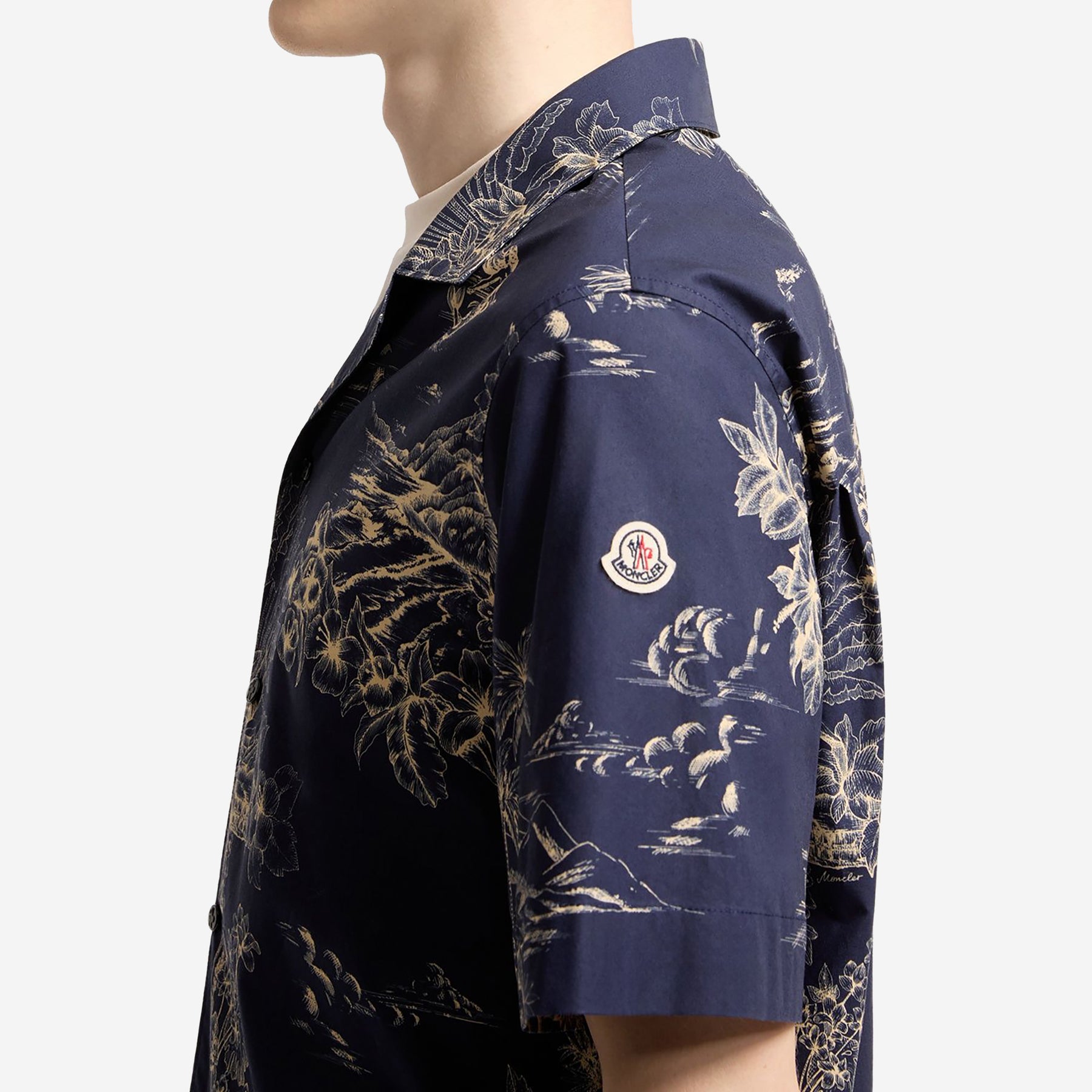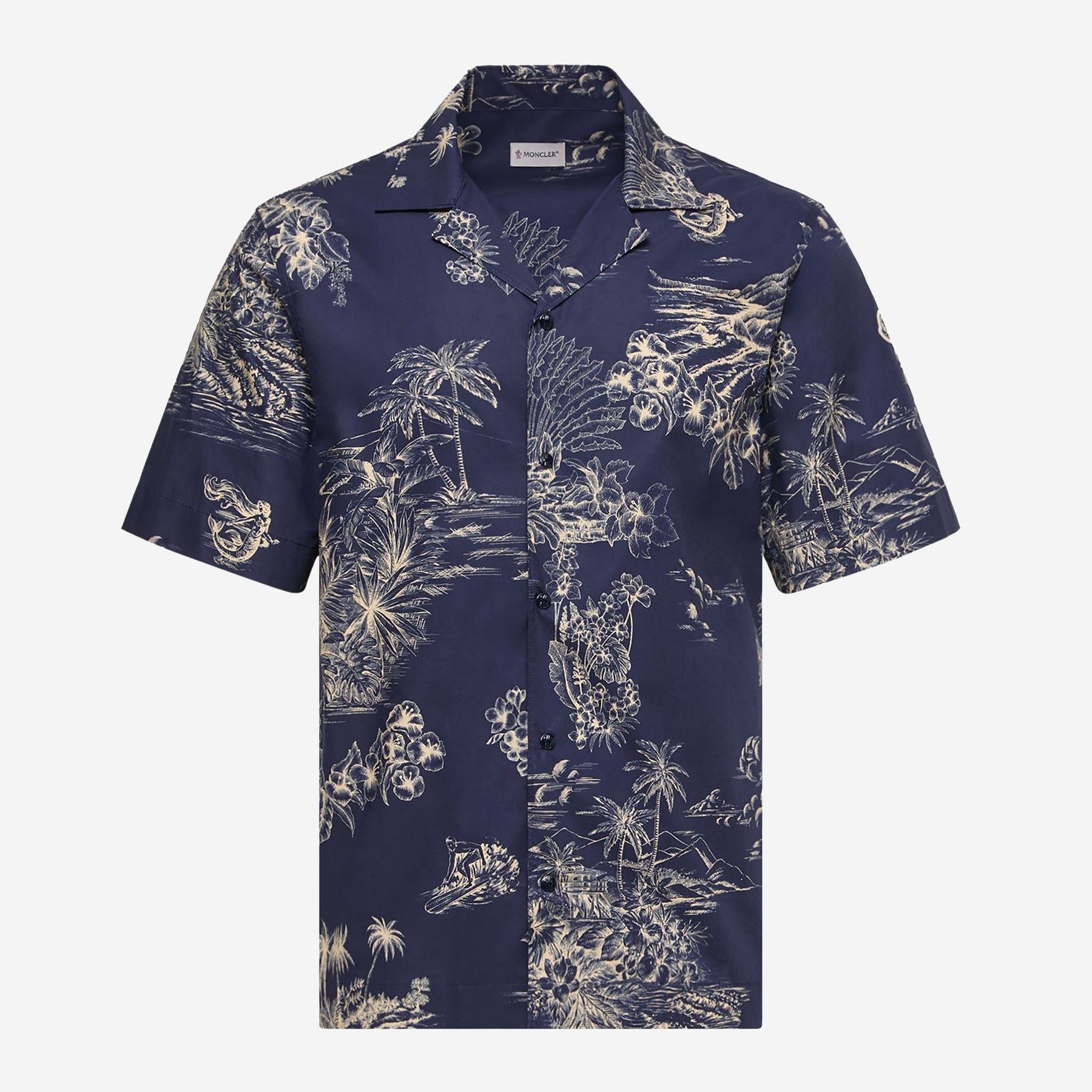 The design is completed by snap-button fastening and a subtle logo detail on the sleeve, creating an easy piece suited to warm-weather dressing