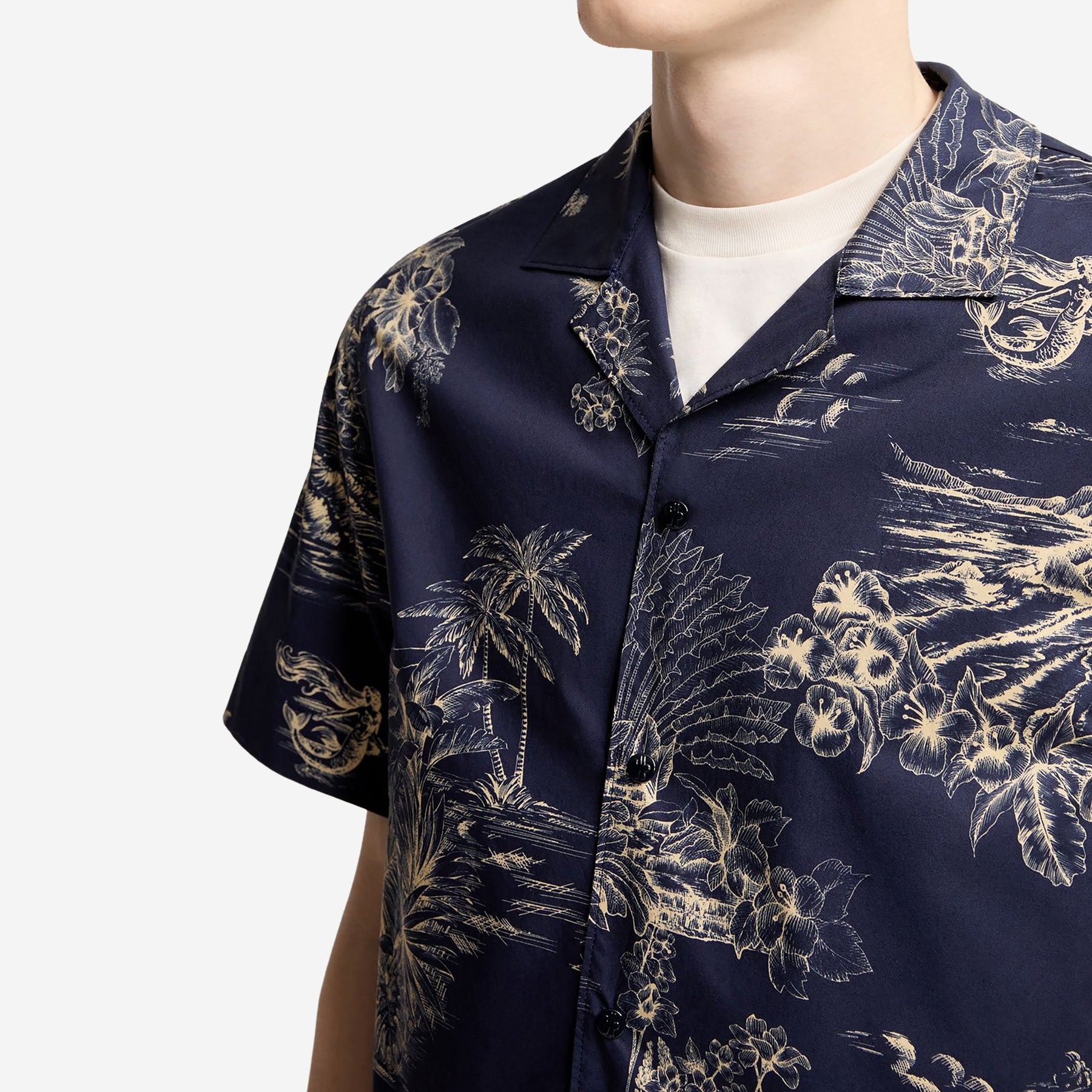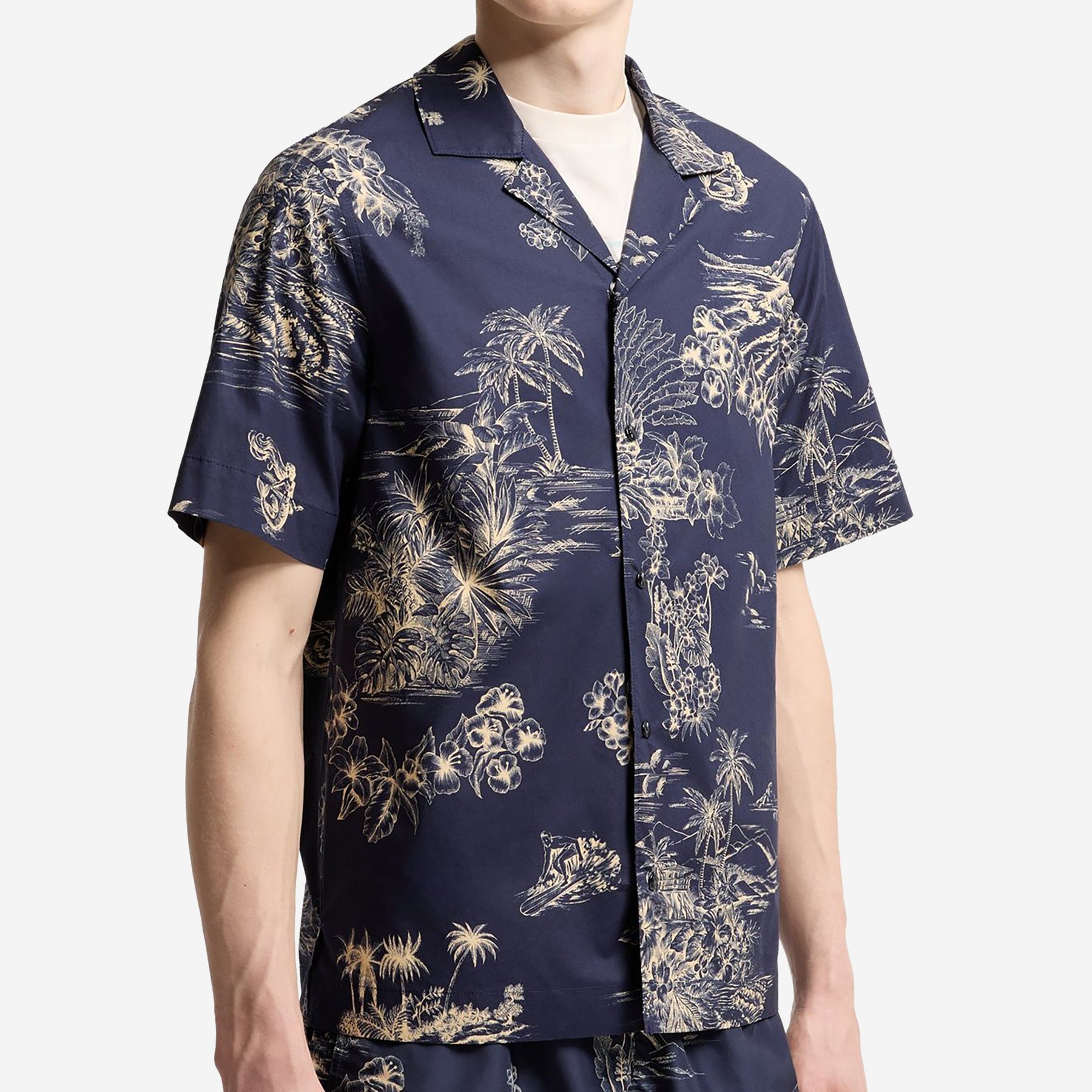 Featuring an expressive, summer‑infused print, this men’s shirt brings a relaxed attitude to a timeless silhouette